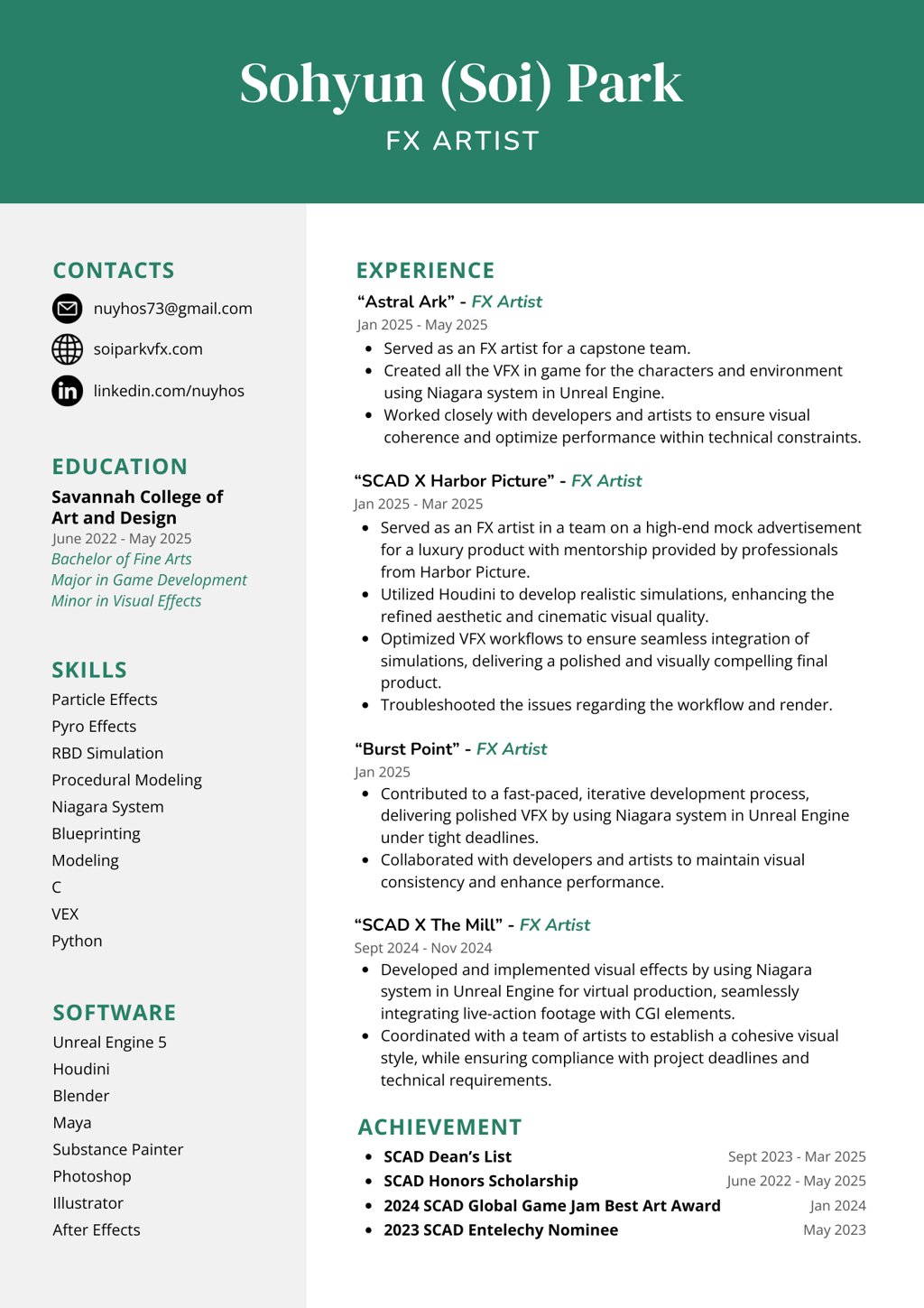 Hi! My name is Soi (Sohyun) Park, an emerging FX artist from South Korea. I studied Game Development with a minor in Visual Effects at the Savannah College of Art and Design.